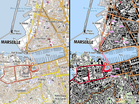 Ranskan valtion karttalaitos, IGN (the French National Mapping Agency), on määritellyt omien karttojensa ulkonäön SLD:n tiedostojen avulla. Esimerkkikuva Marseillen alueelta vakuuttaa:
